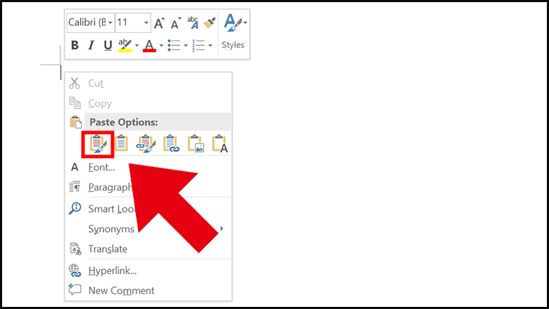 - Bước 2: Mở file Word cần dán > Click chuột phải và chọn Keep Source Formatting trong danh sách Paste Option hoặc nhấn Ctrl + V trên bàn phím.