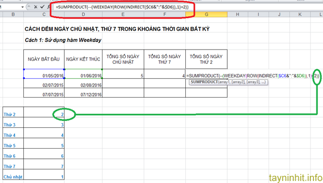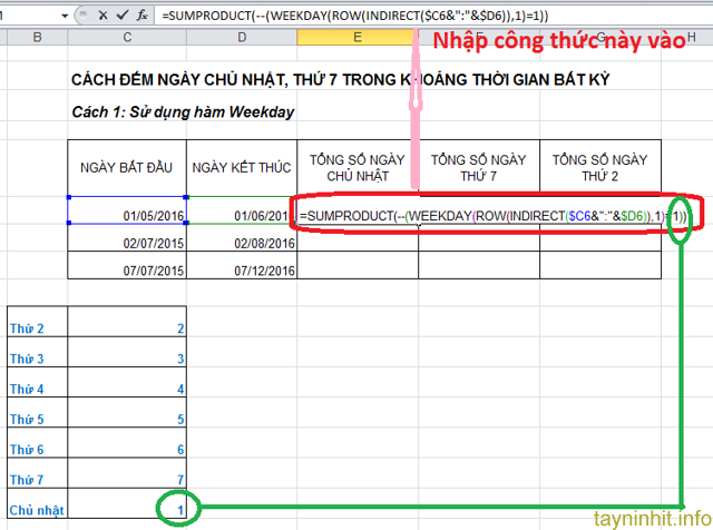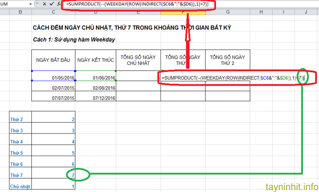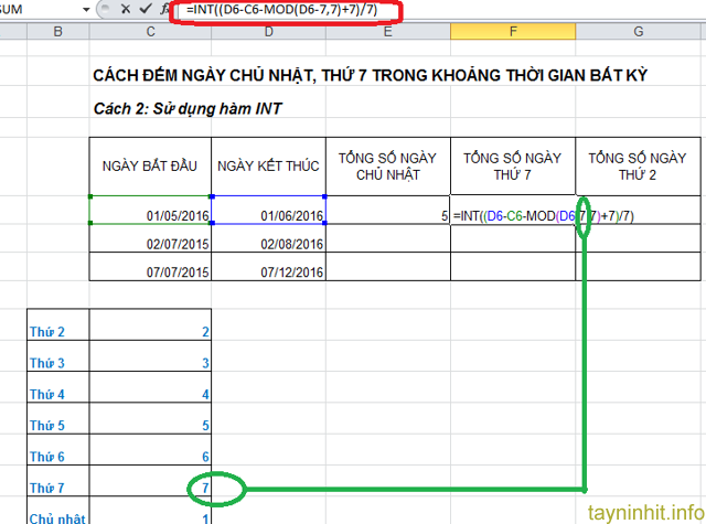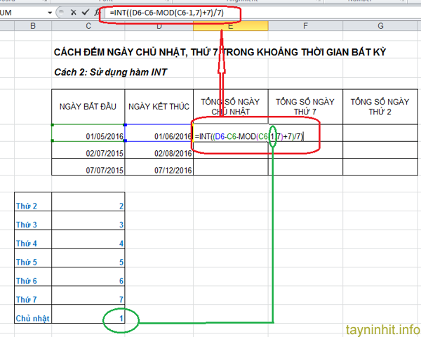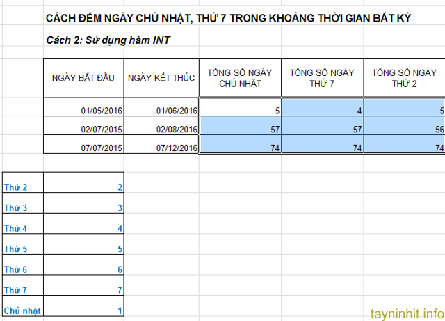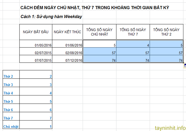 Tương tự ta muốn tính các ngày thứ khác thì ta thay các giá trị tương ứng vào.
