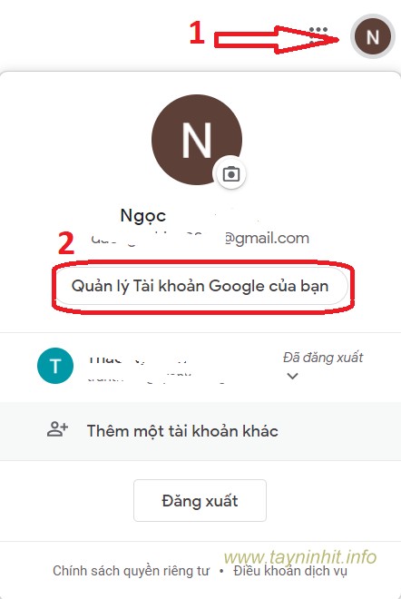 - Bước 1: Bạn nhấn vào ảnh đại diện tài khoản Google của mình > Quản lý tài khoản Google của bạn.