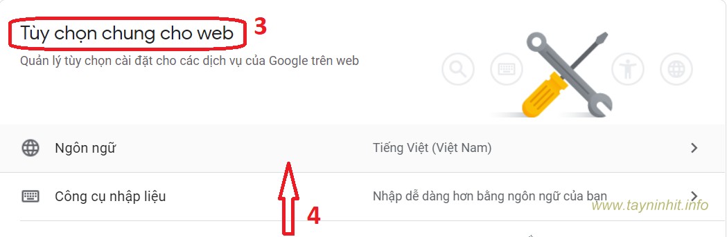 - Bước 3: Tại phần Tùy chọn chung cho web > Ngôn ngữ.