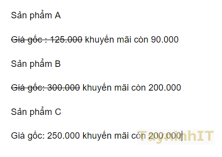Gạch ngang thường được sử dụng khi muốn nhấn mạnh đến một phần văn bản đã bị lược bỏ không còn có giá trị, nhưng không muốn xóa chúng khỏi đoạn văn bản. ví dụ gạch bỏ bán cũ để làm nổi bật sự khác biệt của giá bán mới.