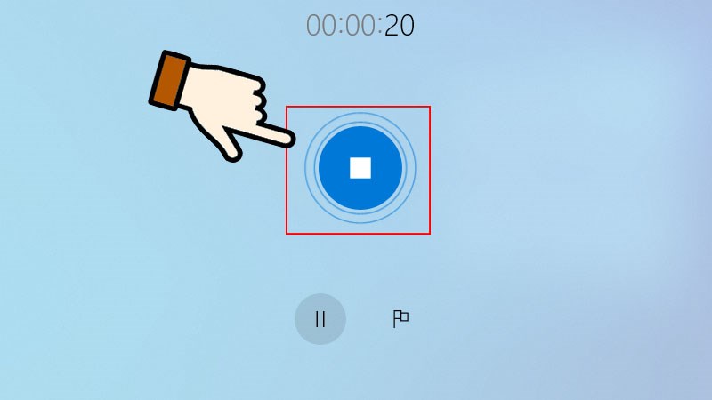 - Bước 5: Để dừng, hoàn tất ghi âm và lưu file nhấn vào biểu tượng Stop. File ghi âm sẽ tự động lưu.