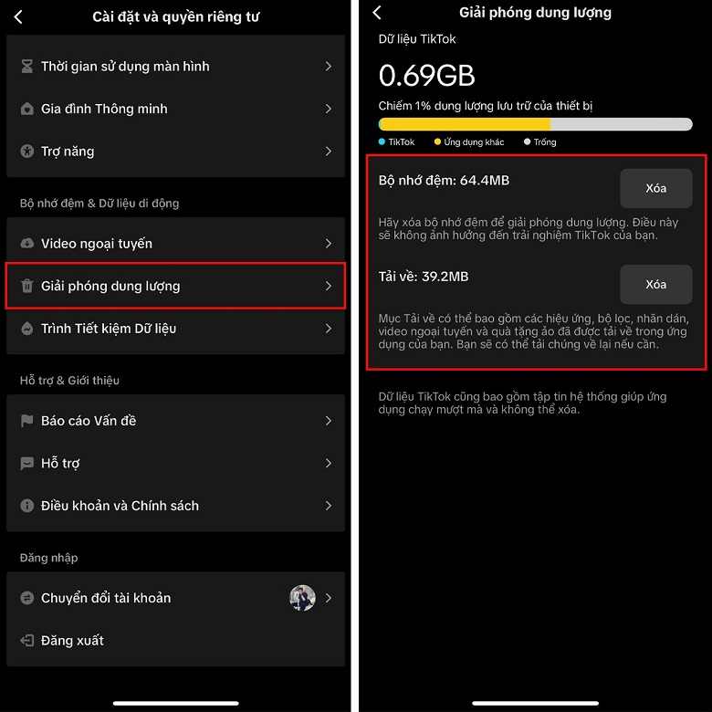 1. Cách giải phóng dung lượng TikTok
