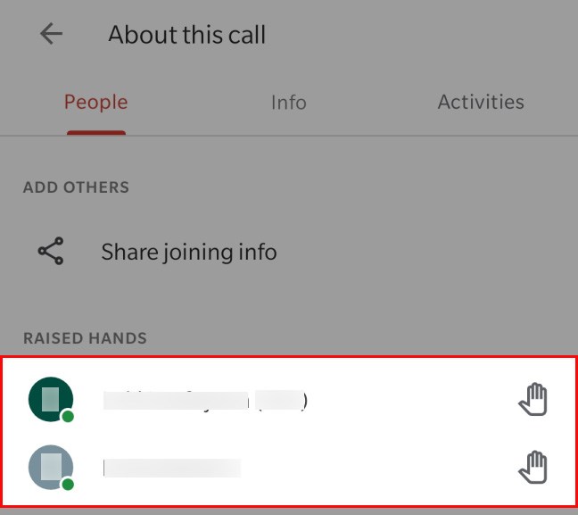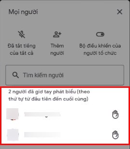 Sau đó, danh sách những người giơ tay sẽ xuất hiện ở bên phải.