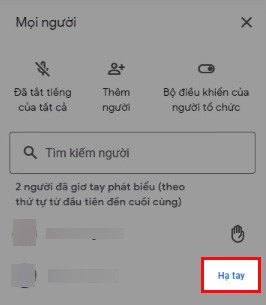 Để hạ tay của người đã giơ tay, bạn chỉ cần chọn Hạ tay ở bên phải tên của người đó.