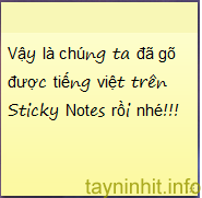 Trở lại Sticky Notes ta gõ ghi chú bằng tiếng việt được rồi đó!