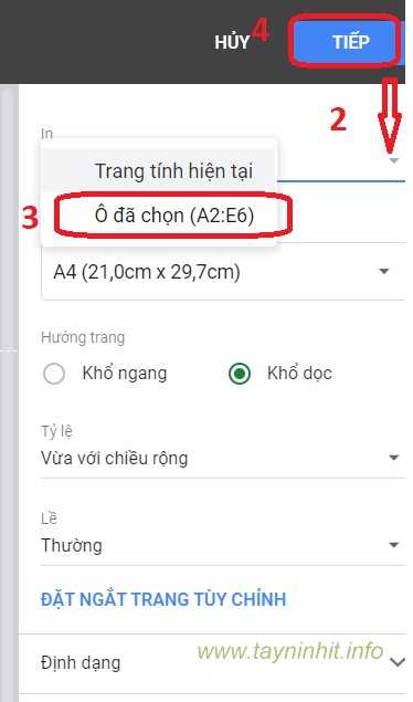 - Bước 3: Điều chỉnh trang in Hướng trang dọc hay ngang ....
