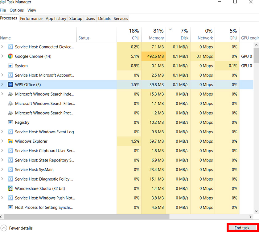 Đối với một số chương trình chạy nền và không hiển thị trên cửa sổ để bạn tắt bình thường thì bạn bấm vào thanh tìm kiếm --> nhập Task Manager, sau đó nhấn chọn vào phần mềm muốn tắt --> nhấn chọn mục End task ở góc dưới.