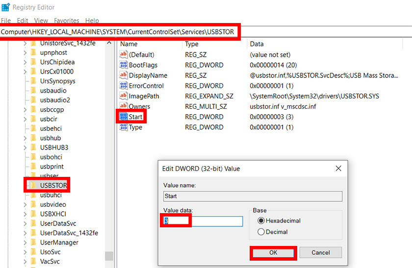 Computer\HKEY_LOCAL_MACHINE\SYSTEM\CurrentControlSet\Services\USBSTOR