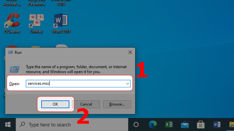 - Bước 1: Chọn tổ hợp phím Windows + R để mở cửa sổ Run > Nhập tìm services.msc > Chọn OK.