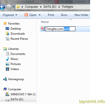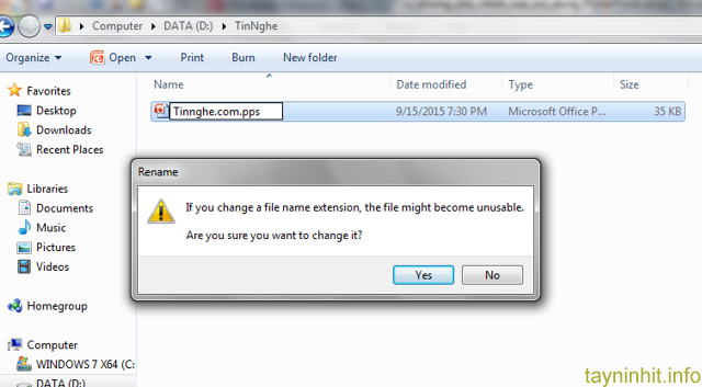 Bước 3: Các bạn đổi đuôi từ .ppt (của PowerPoint 2007) và .pptx (của PowerPoint 2010 và 2013) thành đuôi .pps. Sau đó nhấn Enter hoặc nhấn chuột vào vị trí trống bất kỳ.