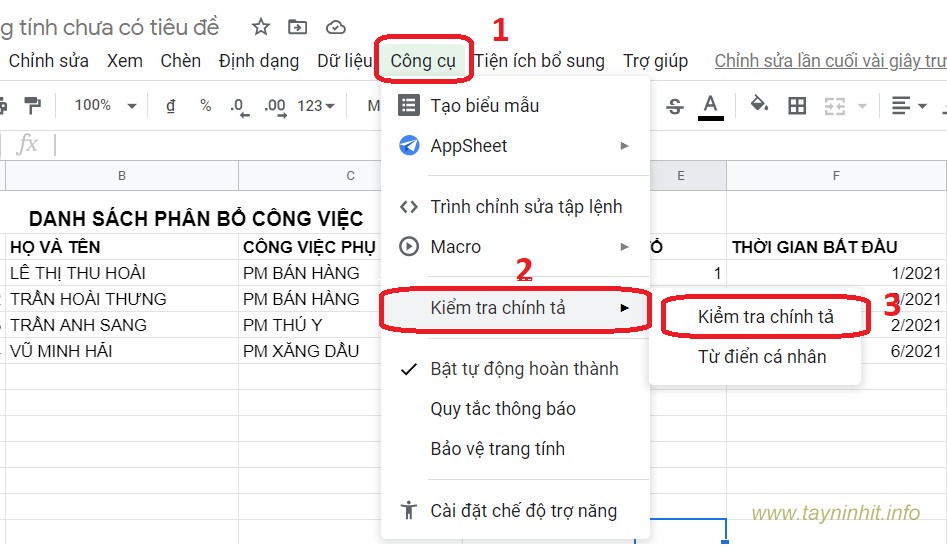 1. Cách kiểm tra chính tả tự động trong Google Sheets Excel