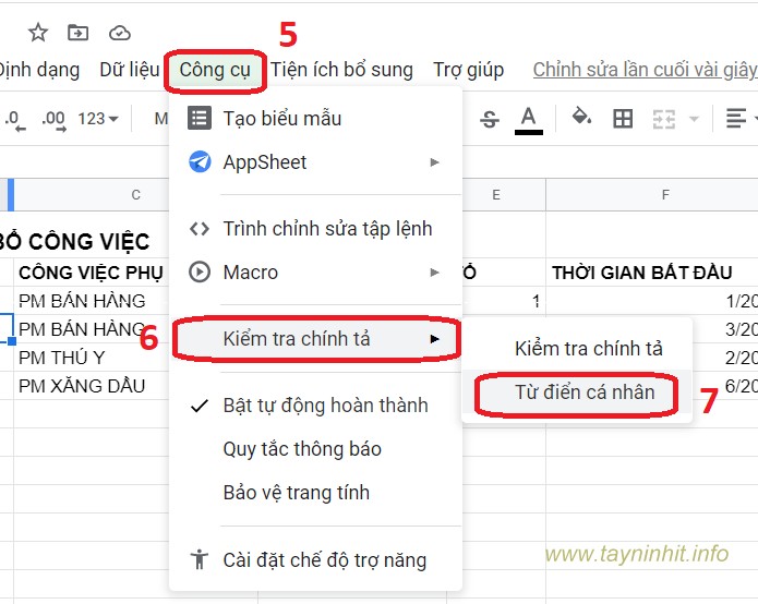 Chúng ta cũng có thể thêm từ đó vào từ điển cá nhân trên Google Sheets excel. Như vậy những lần kiểm tra chính tả sau này, Google Sheets Excel sẽ không nhận định từ này sai chính tả.