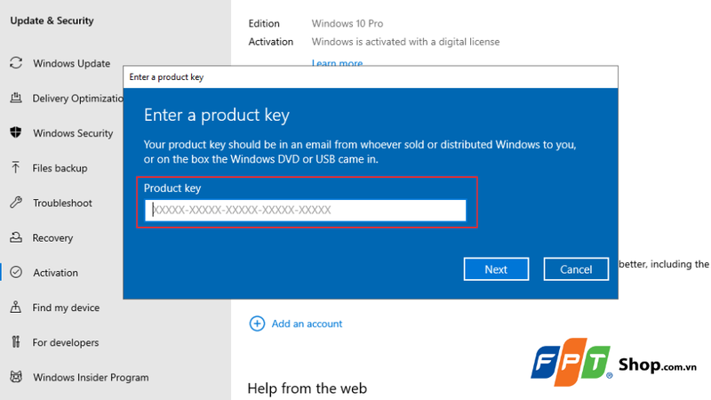 Nếu không phải là Windows bản quyền, bạn nên mua key bản quyền Windows chính thức tại các cửa hàng lớn, uy tín. Sau đó kích hoạt Windows bản quyền bằng các bước hướng dẫn dưới đây: