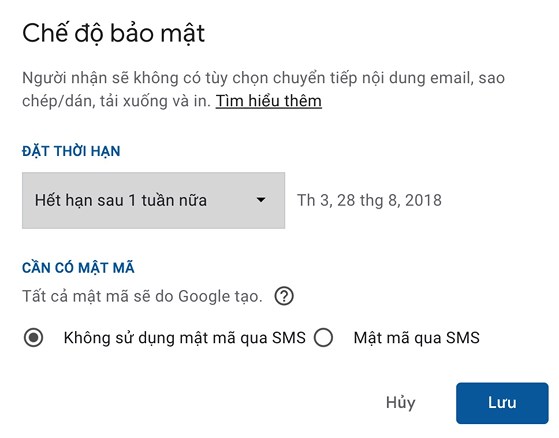 Để sử dụng, bạn chỉ cần mở ứng dụng Gmail và cửa sổ soạn thư --> bấm vào biểu tượng ổ khóa và chiếc đồng hồ và làm theo các bước hướng dẫn. Cụ thể, bạn có thể đặt ngày hết hạn và mật mã để giới hạn quyền truy cập. Người nhận email sẽ không thể sao chép, dán, tải xuống, in hoặc chuyển tiếp thư và các tệp đính kèm sẽ bị vô hiệu hóa. Tuy nhiên, bạn vẫn có thể chụp lại ảnh màn hình.