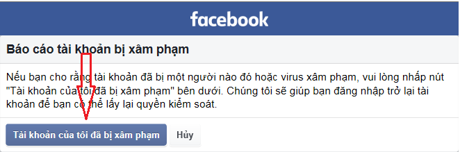 Nhấn chọn nút Tài khoản của tôi đã bị xâm phạm.
