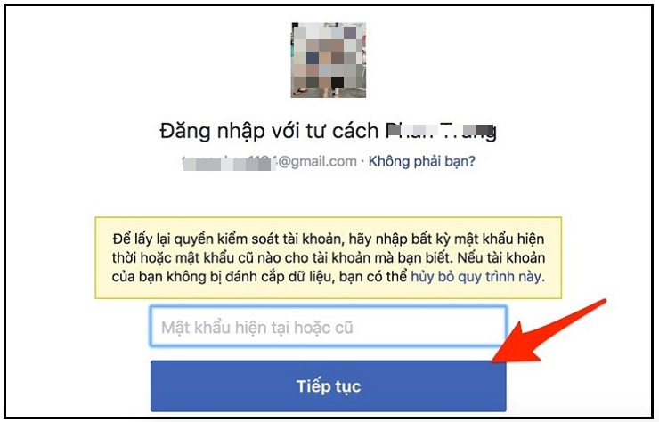- Bước 4: Bạn nhập mật khẩu cũ trước khi bị hack nick.