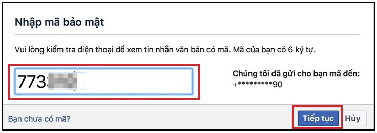Sau khi chọn phương thức lấy lại mật khẩu bạn tiến hành kiểm tra rồi lấy lại mã bảo mật mà facebook đã gửi cho bạn để khôi phục lại mật khẩu.