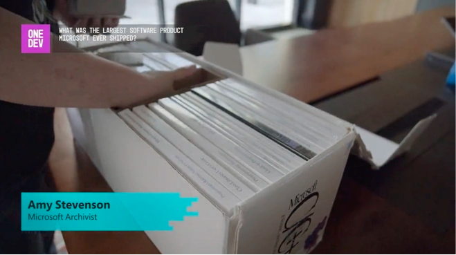 Amy Stevenson, nhân viên kho lưu trữ của Microsoft cho biết bộ phần mềm vật lý lớn và nặng nhất từng được công ty ra mắt là C/C++ Compiler phiên bản 7.0. Được giới thiệu cách đây 30 năm, phần mềm tích hợp bộ Windows SDK, giúp nhà phát triển viết app cho các hệ điều hành Windows, DOS và OS/2 chỉ trong một ứng dụng.