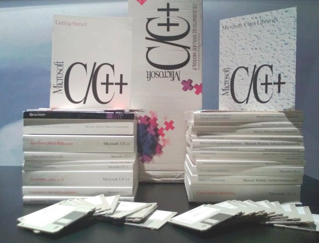 Năm 1992, Microsoft từng bán bộ phần mềm C/C++ Compiler 7.0 trong chiếc hộp nặng gần 20 kg, chứa 25 đĩa mềm và 21 quyển sách hướng dẫn.