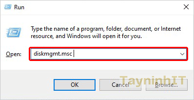 - Cách 1: Nhấn tổ hợp phím Windows + R để mở hộp thoại Run --> nhập "diskmgmt.msc".