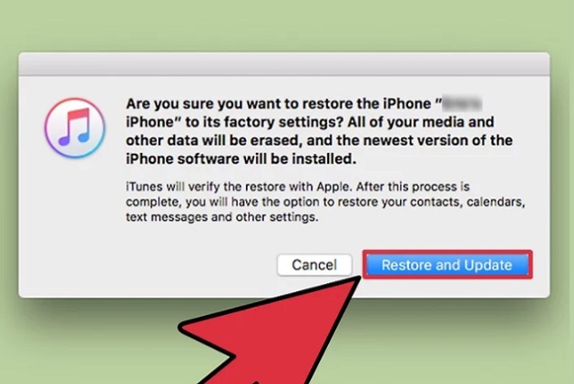 Tiếp tục chọn Restore and Update điều này sẽ buộc bạn phải nâng cấp iPhone lên các phiên bản mới nhất để có thể khôi phục lại máy.
