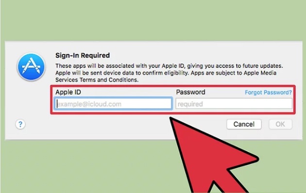 Tiếp theo bạn cần nhập tài khoản Apple ID và nhấn OK để hoàn tất. Tất cả những việc còn lại của bạn chỉ là chờ đến khi việc khôi phục và cập nhật iPhone xong.