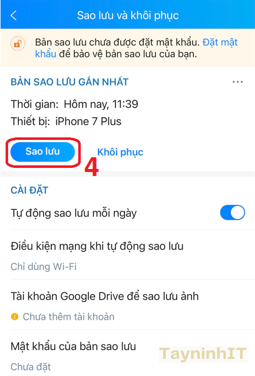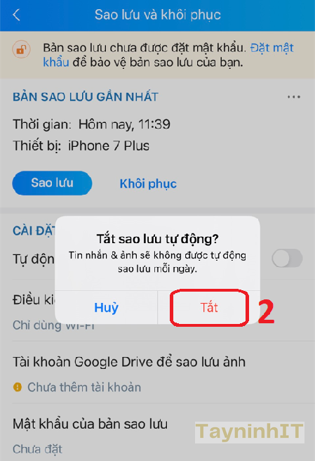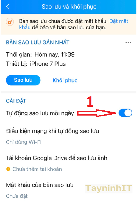 - Bước 1: Bạn thực hiện lần lượt bước 1 và bước 2 ở mục số 2 > tắt chế độ sao lưu ở mục Tự động sao lưu mỗi ngày