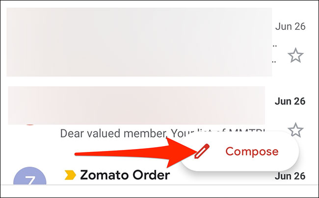 Bây giờ, mở Gmail trên điện thoại của bạn. Ở góc dưới cùng bên phải của ứng dụng, chọn “Compose” (Soạn).
