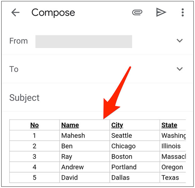 - Bước 6: Bảng mà bạn đã sao chép từ Google Sheets sẽ được dán vào email Gmail. Bây giờ, bạn có thể gửi email này như thông thường, hoặc bổ sung thêm nội dung nếu cần.