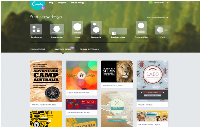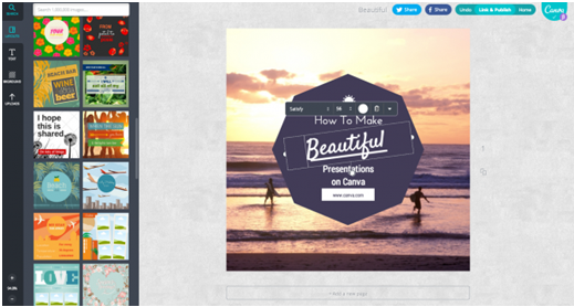 PowerPoint và Keynote cung cấp nhiều tùy chọn cho người thuyết trình, cũng như các công cụ chỉnh sửa hình ảnh khác, nhưng một nhà tiếp thị có thể phát triển tới mức nào khi không có kinh nghiệm sâu rộng hoặc nắm trong tay 1 đội ngũ thiết kế trực quan? Chúng tôi thấy rằng Canva – một nền tảng thân thiện với người dùng , rất hiệu quả khi chúng tôi muốn tìm kiếm một SlideShare, chủ đề Facebook hoặc bài đăng trên các trang mạng xã hội khác.