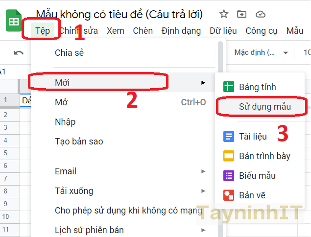- Bước 1: Tại các trang tính thì cũng có thể lựa chọn các mẫu. Chúng ta ta nhấn vào mục Tệp > Mới > Sử dụng mẫu
