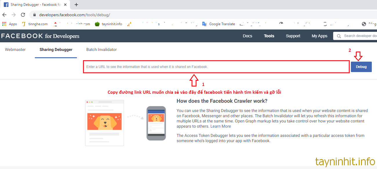 Bước 1:: Truy cập vào đường link gỡ lỗi của facebook