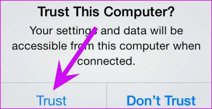 Một số thiết bị như iPhone có thêm một lớp xác thực để xác minh danh tính người dùng. Khi kết nối iPhone lần đầu tiên với máy tính, bạn cần phải mở khóa. iOS sẽ yêu cầu người dùng tin tưởng vào thiết bị được kết nối. Sau khi xác thực, bạn sẽ thấy nội dung iPhone xuất hiện trên máy tính.