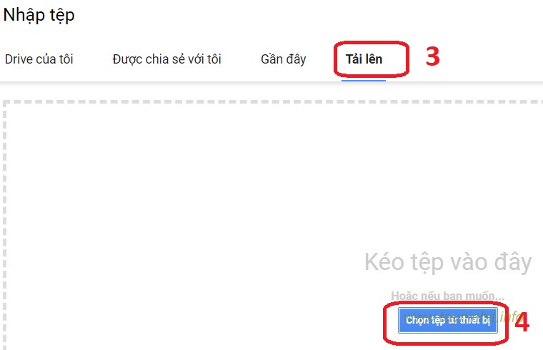 - Bước 2: Bấm Tải lên => chọn tệp từ thiết bị