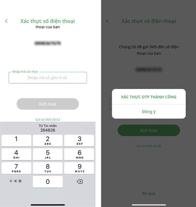 - Bước 3: Bạn nhập mã xác thực OTP 6 số > Kích hoạt để tiến hành xác thực số điện thoại.