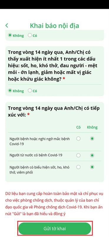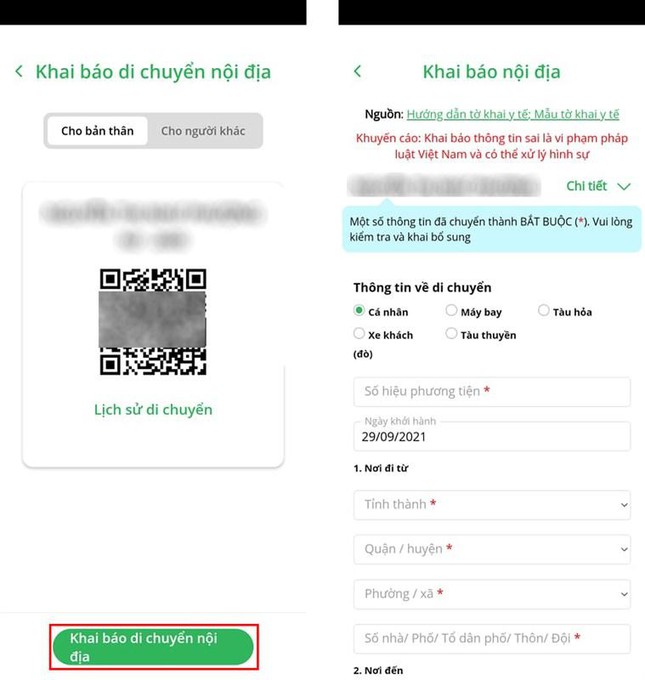 2. Cách khai báo di chuyển nội địa trên PC Covid