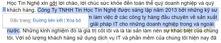- Bước 2: Xuất hiện biểu tượng bookmark màu xanh sẽ hiển thị ngay phía trước nội dung đã đánh dấu, kèm thêm 2 tùy chọn là Liên kết và Xóa bỏ.