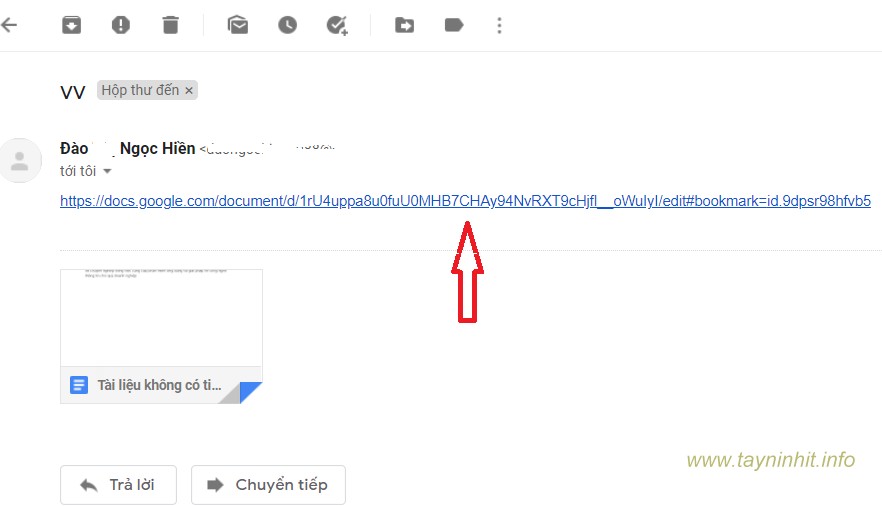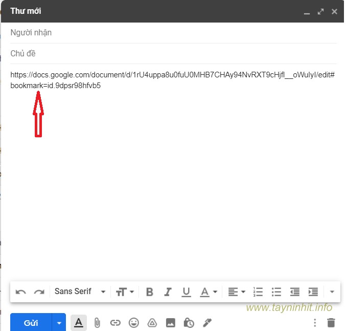 - Bước 3: Với link bookmark vị trí tài liệu cụ thể này người dùng có thể gửi tới người khác để họ truy cập, hoặc chèn vào tài liệu khác tùy thích.