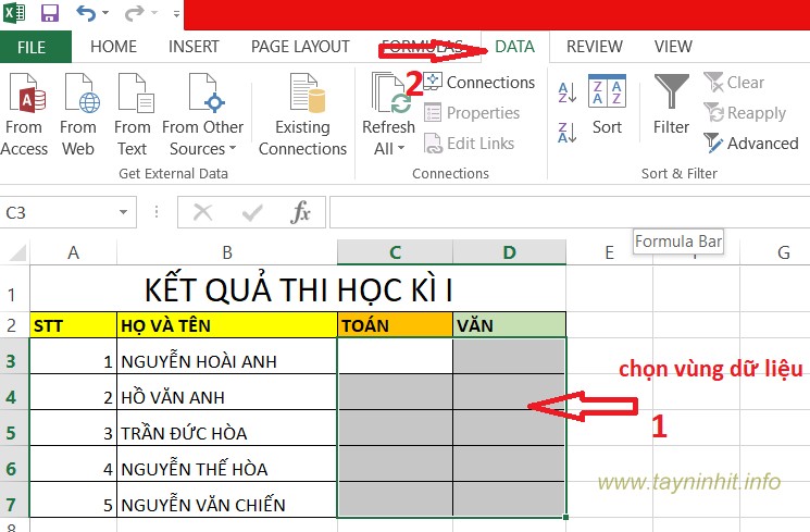 - Bước 1: Bôi đen vùng dữ liệu mà bạn muốn tạo cảnh báo > Data