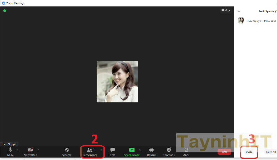 - Bước 2: Tiếp theo, để mời học sinh, sinh viên tham gia phòng học, bạn nhấn vào Participants. Sau đó 1 cửa sổ sẽ hiện ra, bạn chọn Invite ở góc bên dưới.