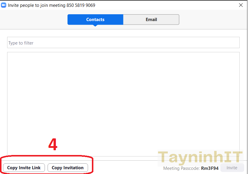 - Bước 3: Nhấn vào Copy Invite Link để gửi link phòng học hoặc chọn Copy Invitation để gửi toàn bộ thông tin bao gồm link phòng, mã ID phòng, password cho những người bạn muốn mời học tham gia.