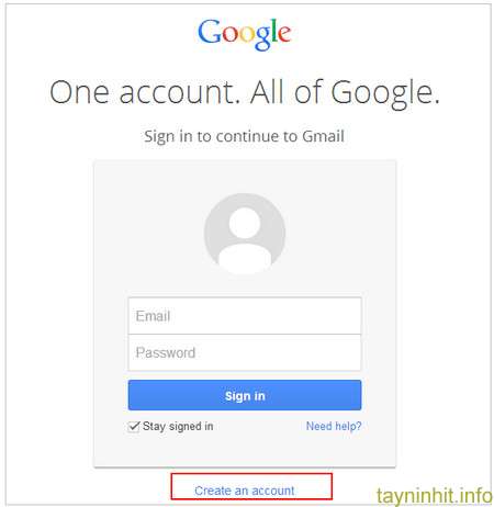 Bước 3: click Create an account để tạo tài khoản Gmail mới.