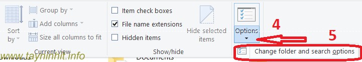 Phía bên phải màn hình chọn Change folder anh search options