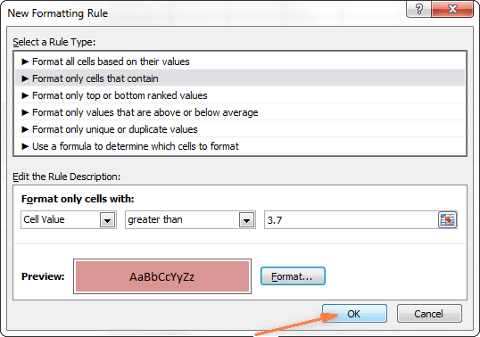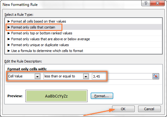- Bước 6. Bây giờ bạn sẽ quay lại cửa sổ New Formatting Rule và xem trước sự thay đổi tại khung Preview. Nếu mọi thứ ổn, nhấn nút OK.