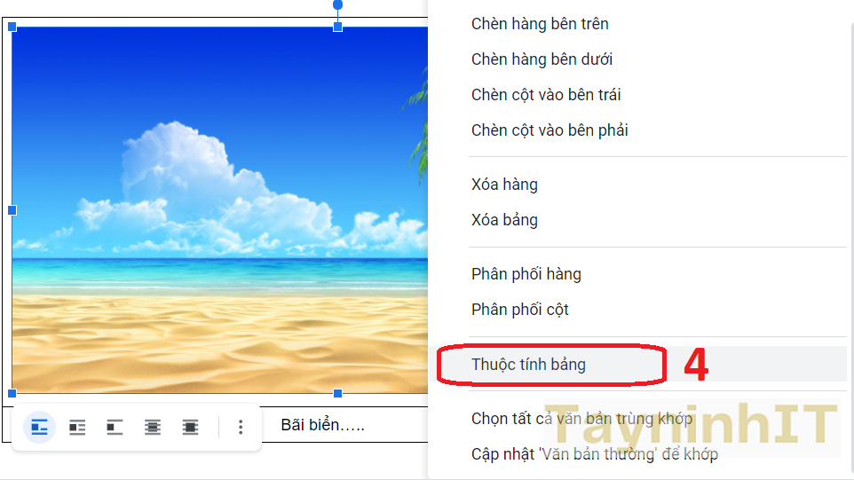 - Bước 3: Nhấp chuột phải vào bảng và chọn > Thuộc tính bảng “Table Properties"
