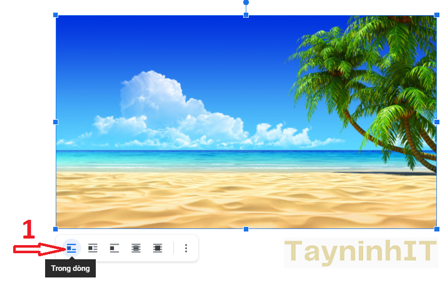 - Bước 1: Nhấp chuột một lần vào hình ảnh bạn muốn thêm chú thích. Một khung viền màu xanh sẽ hiện ra xung quanh ảnh. Nhìn xuống góc dưới bên trái hình ảnh, bấm vào “In Line” (Trong dòng).