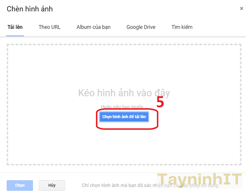 - Bước 3: Chọn hình ảnh để tải lên