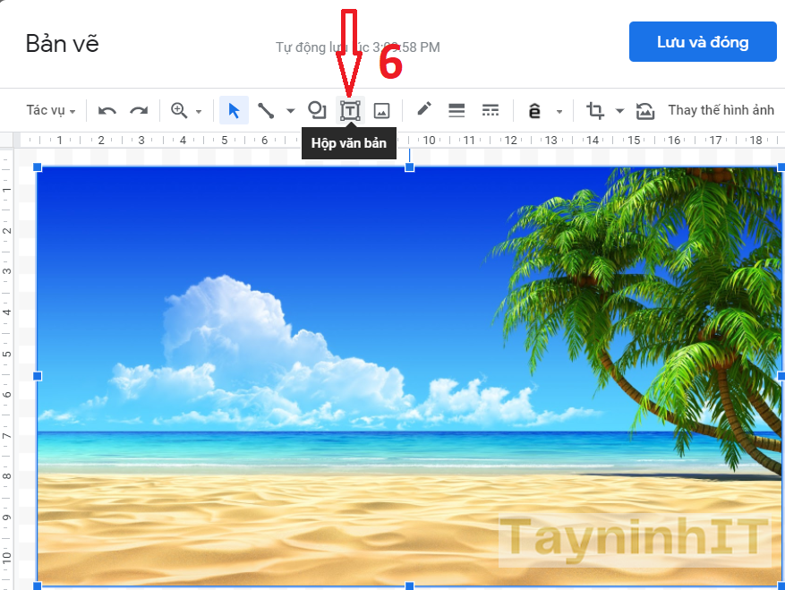 - Bước 4: Sau khi hình ảnh đã ở trong bản vẽ, hãy nhấp vào Hộp văn bản “Text Box” trên thanh công cụ.