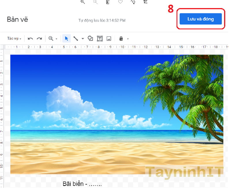 - Bước 6: Chọn Lưu và đóng "Save and Close” . Hình ảnh và chú thích bạn vừa tạo sẽ xuất hiện trong tài liệu.
